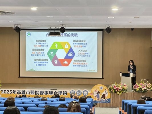 劉貴仁 / 高雄市立小港醫院與高雄市醫事暨醫務行政學會共同主辦的「2025年高雄市醫院醫事聯合學術研討會」於20日在小港醫院急重症大樓國際會議廳盛大舉行,本次研討會以「數位賦能永續醫療,共築健康台灣未來」為主題,邀請中央健康保險署署長陳亮妤、高屏業務組組長林淑華、育英醫護管理專科學校董事長侯明鋒、員林基督教醫院院長李國維,以及高雄市多家醫院院長齊聚,展現南台灣醫療體系在智慧醫療、長照政策及ESG永續發展上的多元成果。