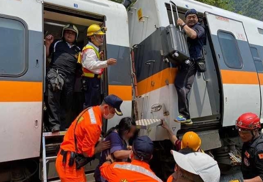 工程車滑下斜坡擊中列車 致太魯閣號五十死 一四六人受傷