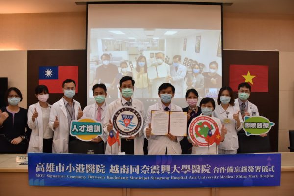 吳雀華 / 小港醫院透過線上跨國直播視訊,與東協第一家臺資綜合醫院-越南胡志明醫藥大學震興醫院簽訂合作備忘錄(MOU),由小港醫院院長郭昭宏與越南震興醫院陳建亨代表雙方簽署,本次合作將待疫情趨緩後,以護理培訓合作為主要導向,輔以教學研究及Covid-19防疫經驗交流,深化台灣與越南合作。